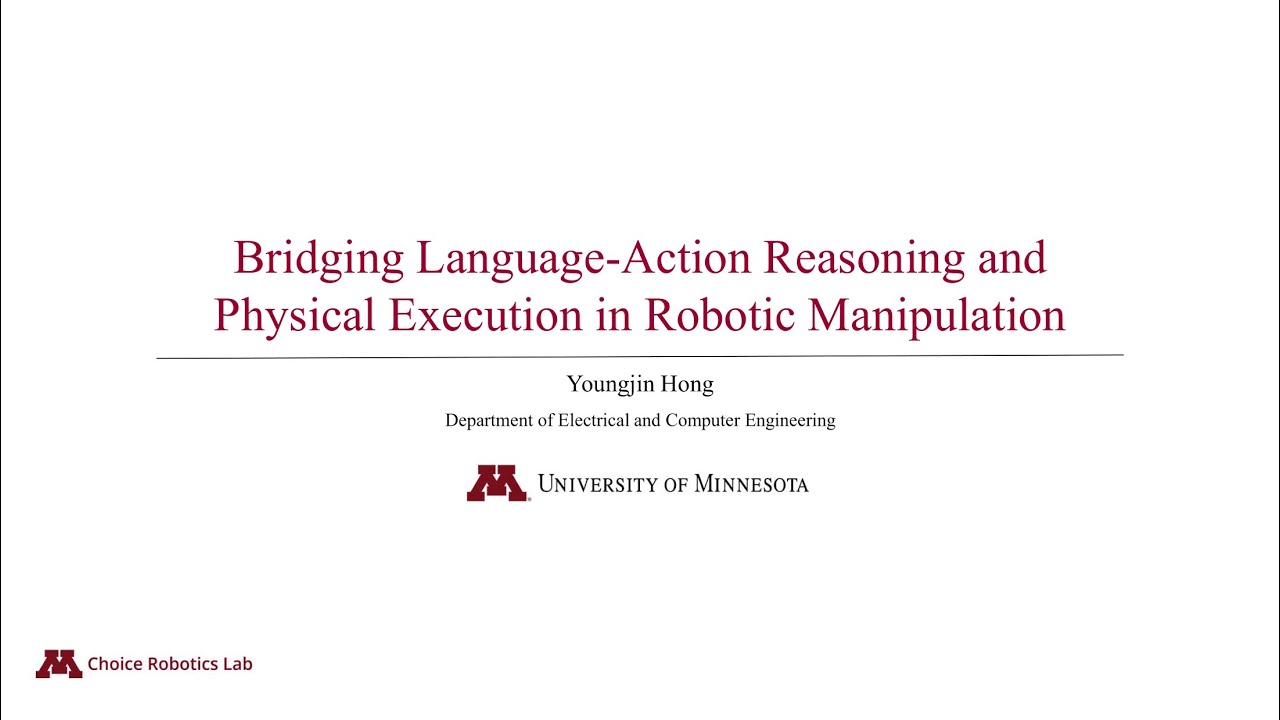 I am particularly interested in leveraging Vision-Language and Vision-Language-Action models to enable robots to reason about and interact with the physical world in a more flexible, human-like way.